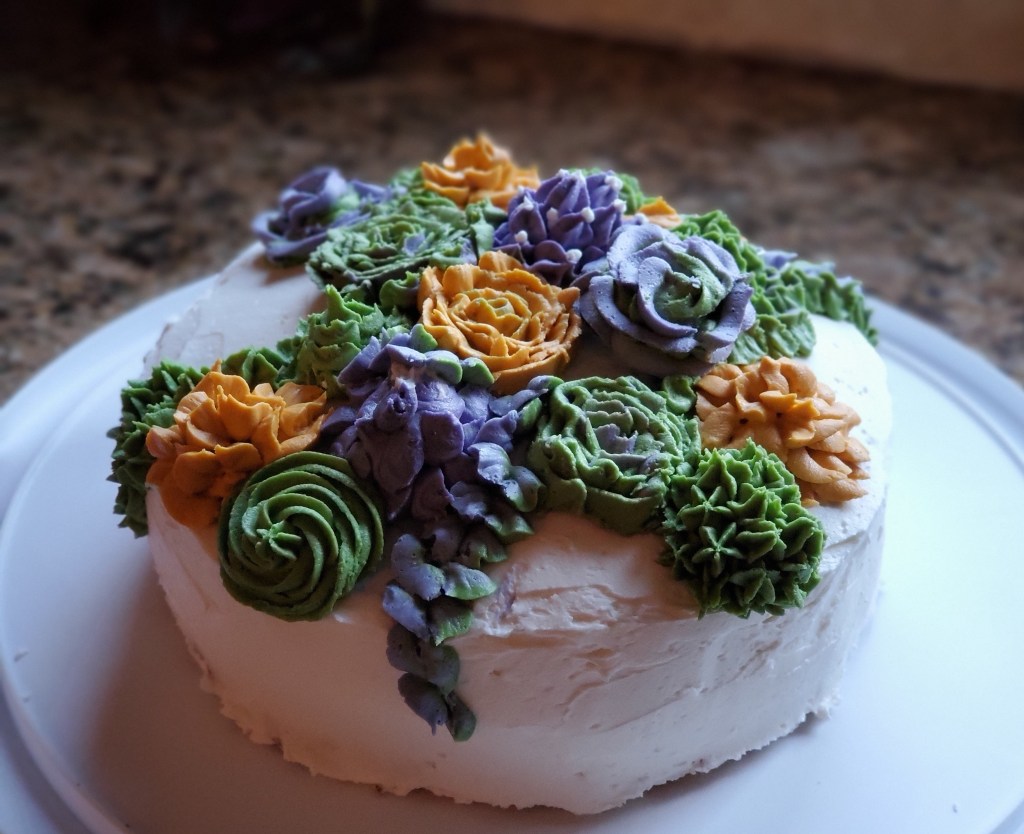 One thing I did try and do for both kids was to make their dream cake just to make the day a tad bit special. My son’s favorite cake is a simple one….boxed yellow cake in the Air Fryer Oven with Publix frosting. I have a great Publix frosting copy cat recipe I’ve made many times before. To make his cake special I decided to break out my cake decorating arsenal and I decorated his cake with frosting succulents (he loves those little plants).