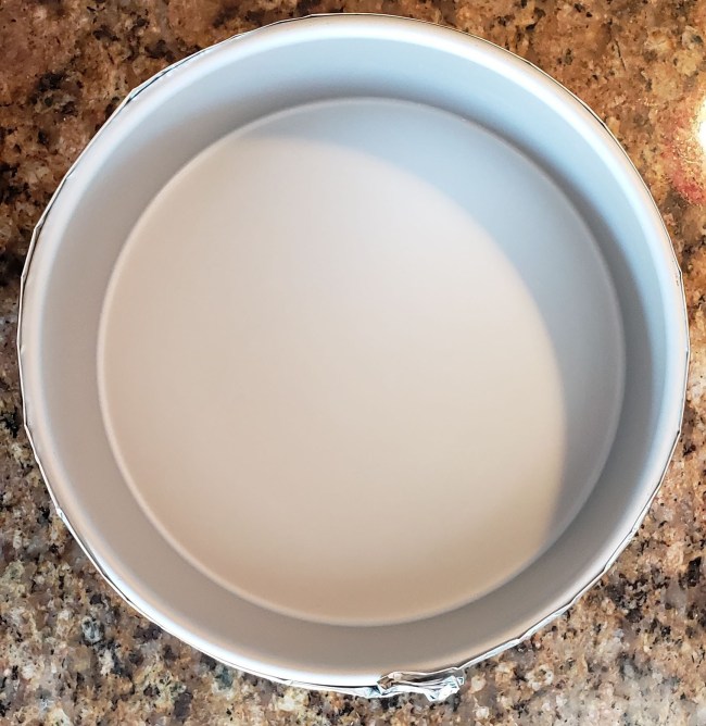Make a foil collar as shown in the pictures below and place around the cake pan. Set aside.
