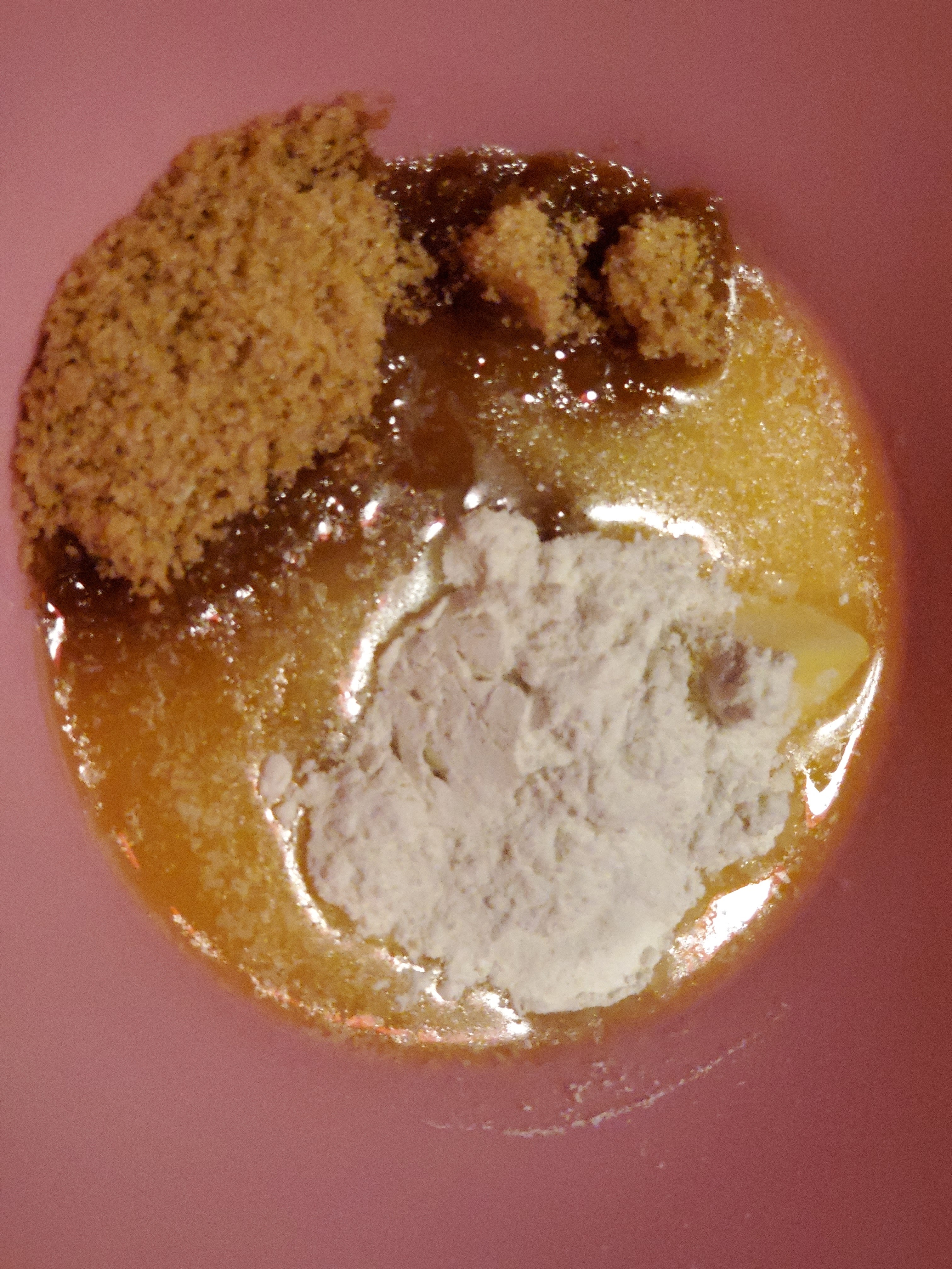 -In a medium bowl, combine 2 Tbl melted Butter, 2 1/2 Tbl Brown Sugar, and 2 Tbl Flour. Mix using a fork until it resembled wet sand.