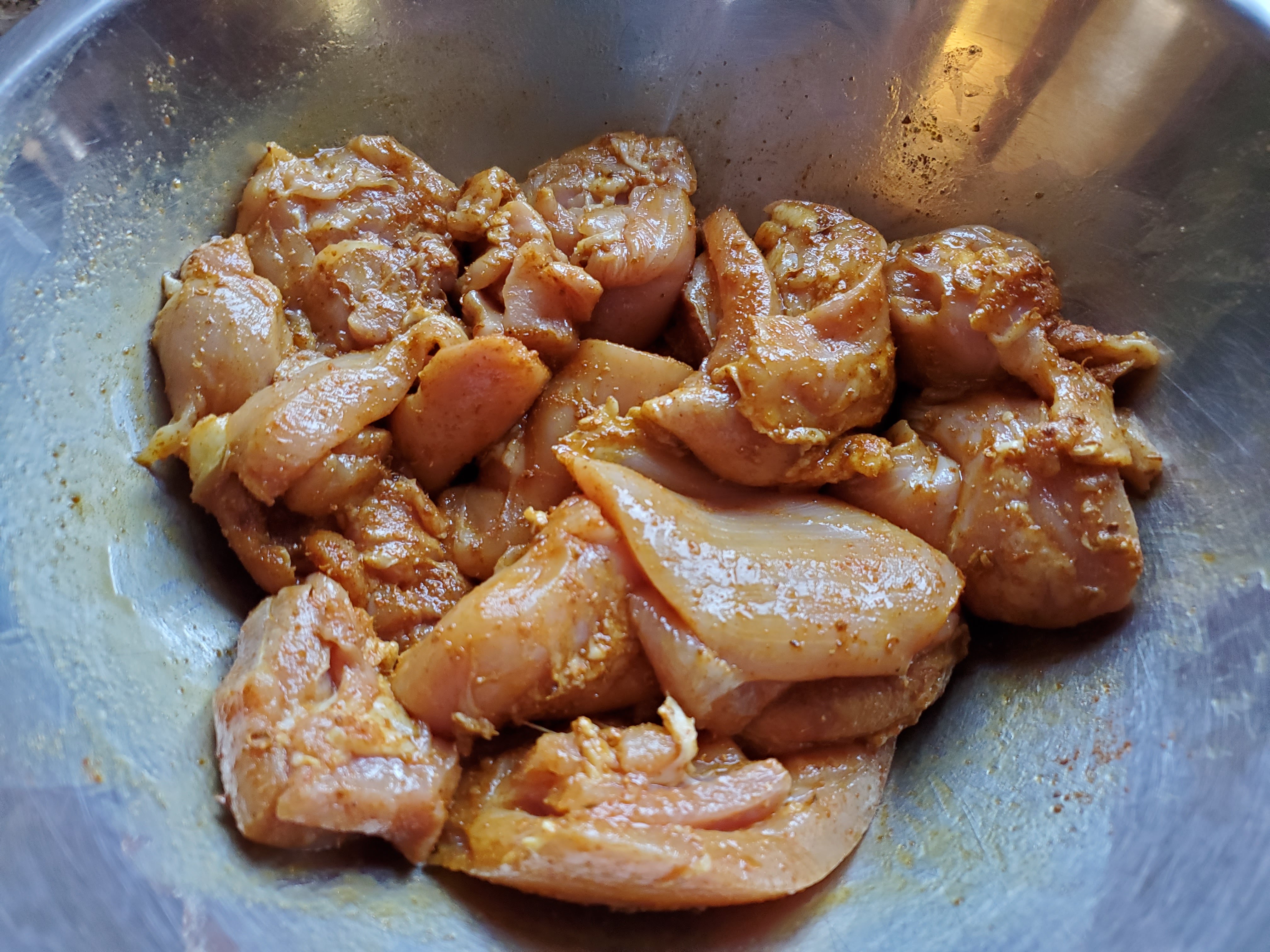 Cut the Chicken Thighs in half so they are about 3 inches x 3 inches.